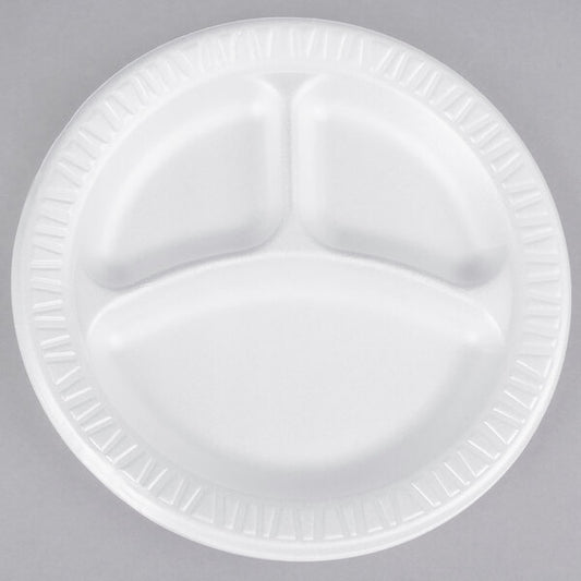 9" 3 Compartment White Laminated Round Foam PlateRegular price $11.49 USDRegular priceUnit price / per-