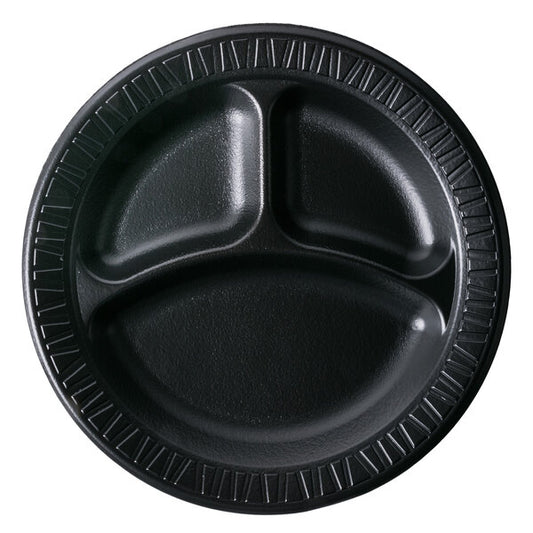 10 1/4" 3 Compartment Black Laminated Round Foam PlateRegular price $96.77 USDRegular priceUnit price / per-