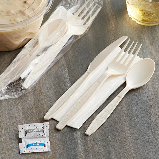 Beige Wrapped Plastic Cutlery Pack with Napkin and Salt and Pepper PacketsRegular price $47.99 USDRegular priceUnit price / per-