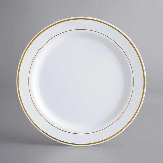 10" White Plastic Plate with Gold BandsRegular price $10.00 USDRegular priceUnit price / per-