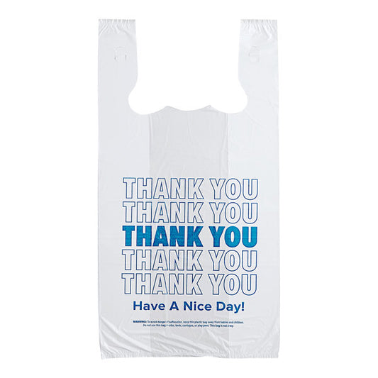1/6 Size White "Thank You" Standard-Duty T-Shirt Bag