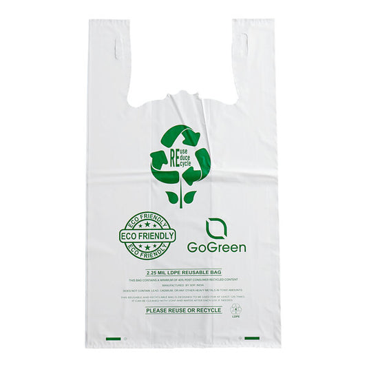 1/5 Size 2.25 Mil White Reusable Extra Heavy-Duty Plastic T-Shirt Bag