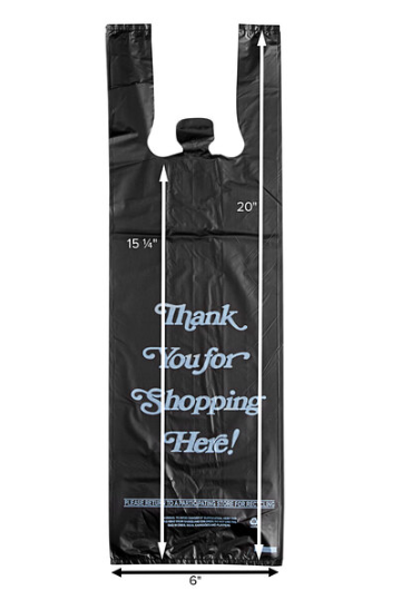 1/6 Size .87 Mil Black Unprinted Embossed Heavy-Duty Plastic T-Shirt Bag