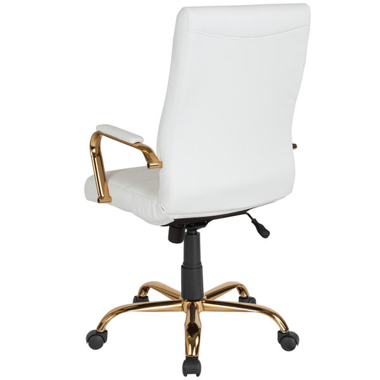High-Back White Leather Swivel Office Chair with Gold Base and ArmsRegular price $164.49 USDRegular priceUnit price / per-
