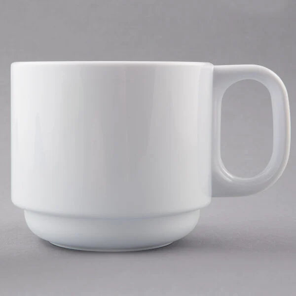 This 11 oz. mug is perfect for hot chocolate, coffee, tea, and any other delicious beverages. Made of  plastic, this mug offers extreme durability and is break-resistant, making it ideal for use in high volume venues. Designed to withstand the rigors of everyday use and commercial dish machines, this plastic resists heat and chemicals to keep your product looking new. Plus, the classic shape and handle provides patrons with a comfortable way to hold the mug and drink its contents, providing an optimal drinking experience.BPA Free. Dishwasher Safe. Microwavable. Stackable.