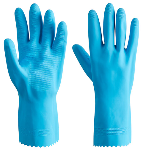 For reliable protection in a variety of applications, choose these Lavex Janitorial 12" blue 18 mil latex rubber gloves. These anatomically-shaped gloves feature an 18 mil latex rubber construction, which provides improved sensitivity and dexterity. The pure cotton flock lining absorbs perspiration to provide better comfort to the user. These gloves contain bacteriostatic and fungistatic additives. Additionally, they feature an anti-slip grip pattern that provides a good grip in both wet and dry conditions.