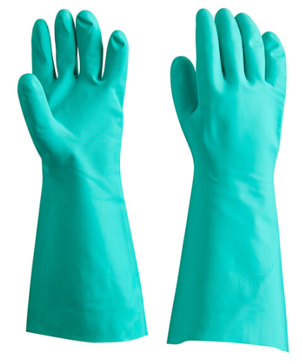 For reliable protection in a variety of applications, choose these 13" green 11 mil unlined nitrile gloves. These anatomically-shaped gloves feature an 11 mil nitrile rubber construction, and they are chlorine-washed to provide increased chemical and abrasion resistance. The gloves are unlined, and they feature an anti-slip grip pattern that provides a good grip in both wet and dry conditions.