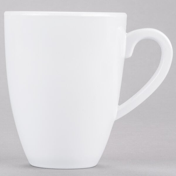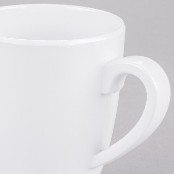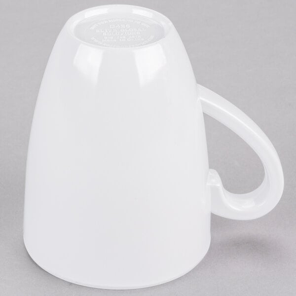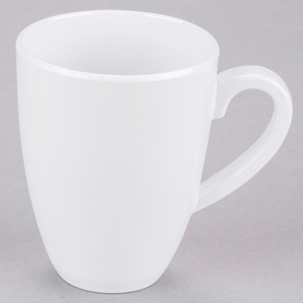 Encourage your customers to cozy up to the table with a mug of creamy hot chocolate, nutrient-rich green tea, or flavorful dark roast coffee with this 14 oz. white melamine mug! Whether you're serving college students in a trendy cafe or residents in a nursing home, this classic white mug will catch their eye and make them crave a warm, delicious pick-me-up. Plus, this mug's 14 oz. capacity will give your customers just the right amount of their favorite drink to brighten their morning or provide them with the energy they need to make it through a long night of studying. Round shaped. BPA Free. Dishwasher Safe. Color: white.