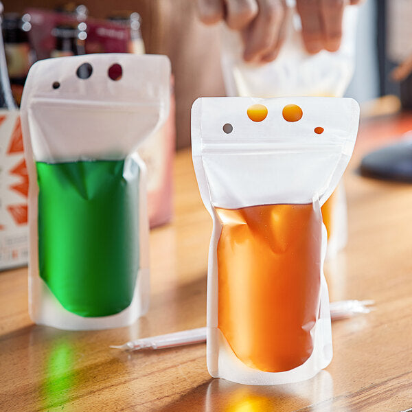 This 16 oz. clear plastic single zipper drink pouch is perfect for transporting and serving delicious iced coffee, fresh brewed iced tea, pre-mixed cocktails, and your signature syrups! With minimal bulk and easy cleanup, this bag is a convenient and versatile staple in your restaurant, concession stand, food truck, or catered event.