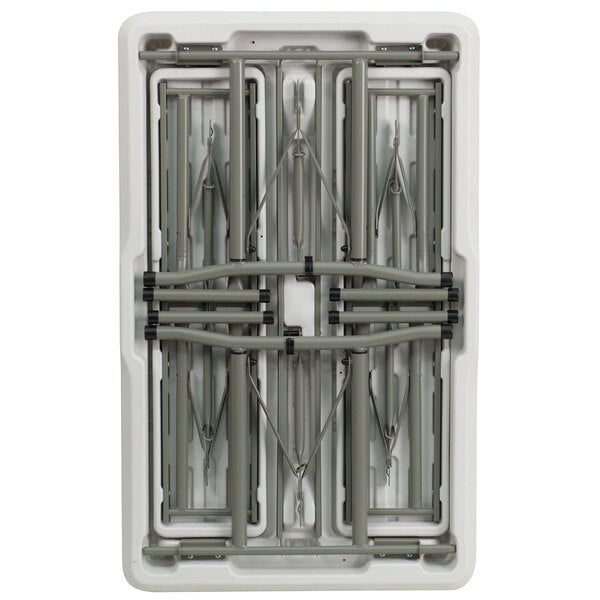 25 1/2" x 41" White Plastic Folding Table with 2 Benches