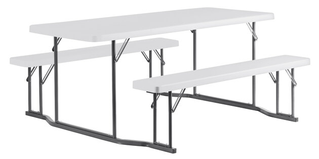 30" x 71" Rectangular White Plastic Folding Picnic Table with Attached Benches
