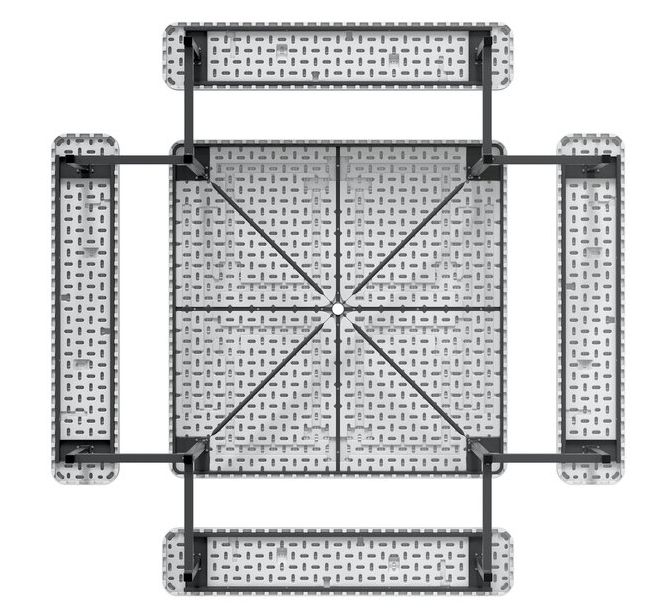 Material: Frame Material: Steel                        Seat Material: Polyethylene          Tabletop Material:Polyethylene
