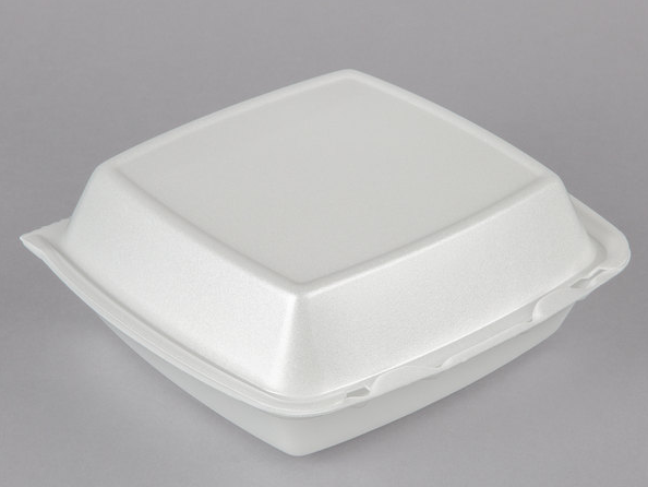 8" x 8" x 3" White Foam Square Take Out Container with Perforated Hinged Lid