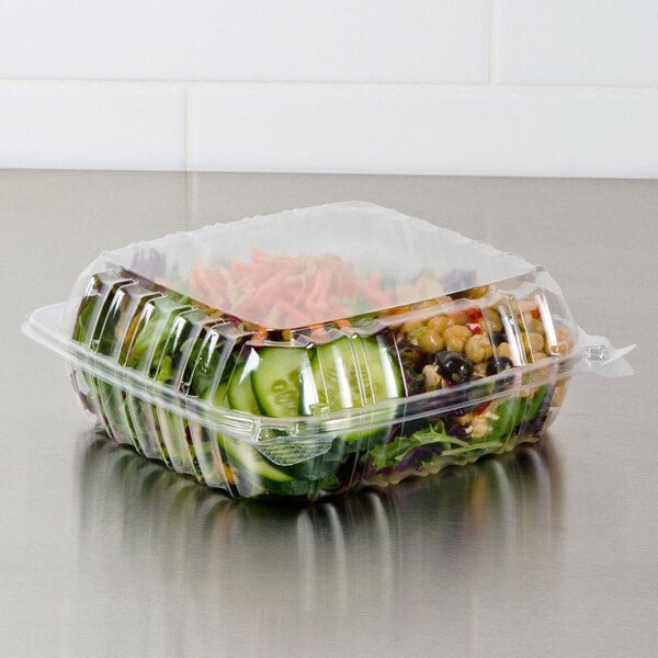 Give your customers the ultimate experience by letting them take home salads, sandwiches, cookies, pasta, and more with this clear hinged container! Comprised of OPS plastic, these containers are perfect for delis, concession stands, food trucks, cafes, and any food service establishment that offers take-out.