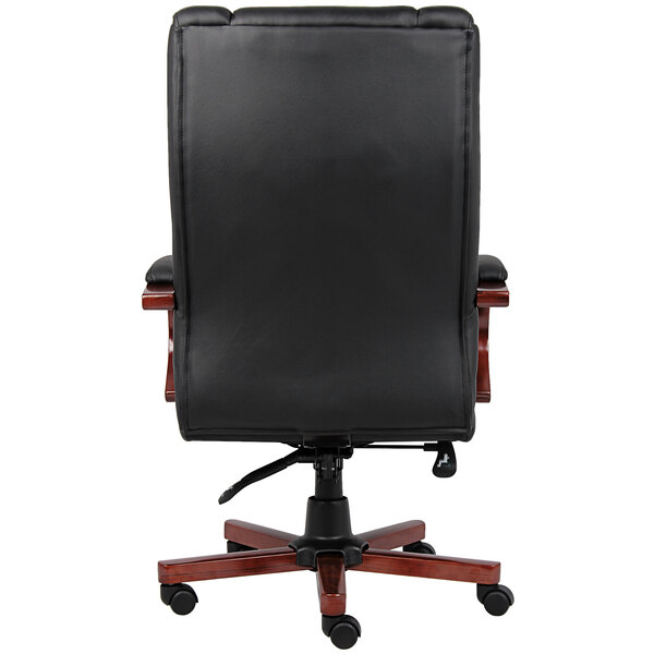 Black High Back Executive Chair with Cherry Wood Finish