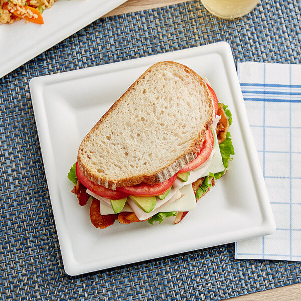 If you're looking for the convenience of disposable products without the environmental impact of plastic or foam, look no further than the compostable sugarcane / bagasse 8" x 8" square plate. Perfect for both hot and cold foods, this plate is an ideal solution for quick-serve restaurants, caterers, and cafes.