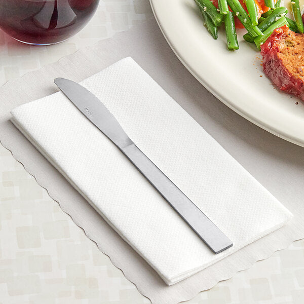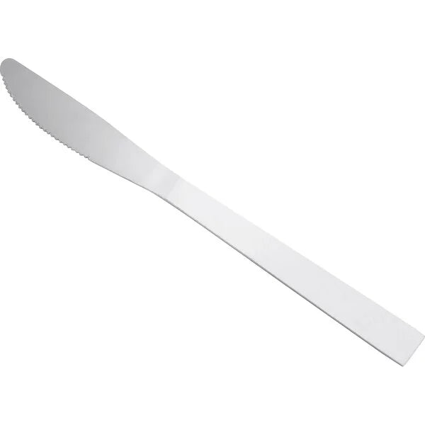 Complete your table setting with this 8 3/8" dinner knife. . Your guests are sure to appreciate the tasteful design of this flatware, and it won't break your budget! Made of stainless steel, it will be a long lasting and complementary addition to your decor. Ideal for diners, cafes, and bars, this flatware adds the perfect touch to your casual eatery!